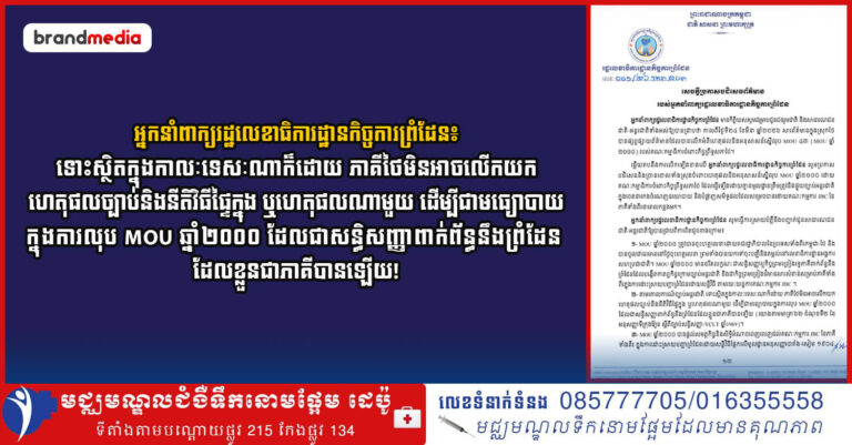 អ្នកនាំពាក្យរដ្ឋលេខាធិការដ្ឋានកិច្ចការព្រំដែន៖ ទោះស្ថិតក្នុងកាលៈទេសៈណាក៏ដោយ ភាគីថៃមិនអាចលើកយកហេតុផលច្បាប់និងនីតិវិធីផ្ទៃក្នុង ឬហេតុផលណាមួយ ដើម្បីជាមធ្យោបាយក្នុងការលុប MOU ឆ្នាំ២០០០ ដែលជាសន្ធិសញ្ញាពាក់ព័ន្ធនឹងព្រំដែន ដែលខ្លួនជាភាគីបានឡើយ!March 26, 2026