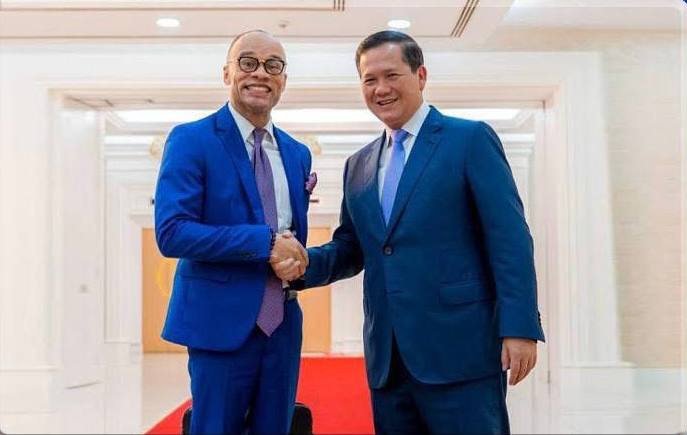 នារសៀលថ្ងៃទី១៣ ខែឧសភា ឆ្នាំ២០២៥ នៅវិមានសន្តិភាព, សម្តេចមហាបវរធិបតី ហ៊ុន ម៉ាណែត នាយករដ្ឋមន្ត្រីនៃព្រះរាជាណាចក្រកម្ពុជា បានអនុញ្ញាតឱ្យ លោក Lucius Daniels នាយកប្រចាំតំបន់អាស៊ីនៃក្រុមហ៊ុន The Report Company ចូលសម្តែងការគួរសម។