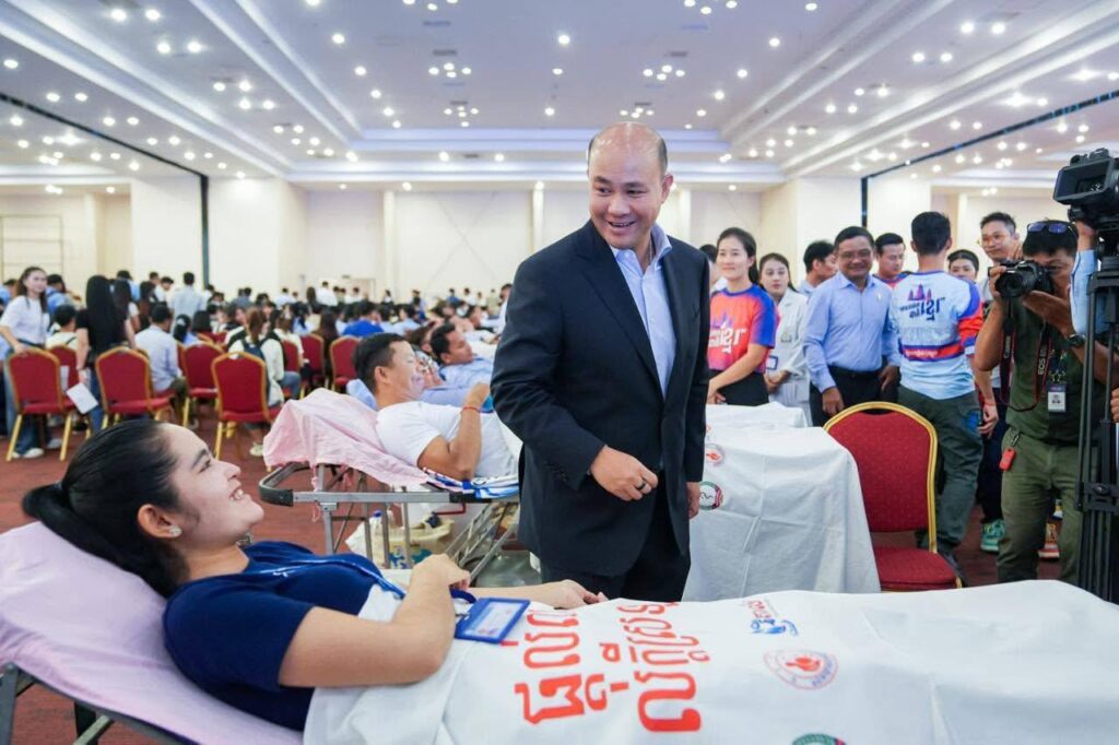 នាព្រឹកថ្ងៃទី២៥ ខែកក្កដា ឆ្នាំ២០២៥នេះ ឯកឧត្តមឧបនាយករដ្ឋមន្ត្រី ហ៊ុន ម៉ានី តំណាងដ៏ខ្ពង់ខ្ពស់លោកជំទាវបណ្ឌិត ពេជ ចន្ទមុន្នី ហ៊ុនម៉ាណែត អនុប្រធានក្រុមប្រឹក្សាភិបាល សមាគមគ្រូពេទ្យស្ម័គ្រចិត្តយុវជនសម្ដេចតេជោ ( TYDA ) អញ្ជើញជាអធិបតីក្នុងពិធីបរិច្ចាគឈាមមនុស្សធម៌ក្នុងគោលបំណងសំខាន់ចំនួន២ គឺ៖ ១/ បម្រេីដល់សេចក្តីត្រូវការជាប្រចាំក្នុងការសង្គ្រោះជីវិតដែលទទួលគ្រោះថ្នាក់ ឬអ្នកជំងឺដែលកំពុងសម្រាកព្យាបាល ហេីយមានតម្រូវការឈាមជាបន្ទាន់ និង២/ ត្រៀមបម្រុងសម្រាប់វីរកងទ័ពជួរមុខ ឬប្រជាពលរដ្ឋ ក្នុងករណីដែលទទួលរងរបួស ឬគ្រោះថ្នាក់ដោយសារសង្គ្រាមឈ្លានពានទឹកដីនៅទិសខេត្តឧត្តរមានជ័យ និងខេត្តព្រះវិហារ។
