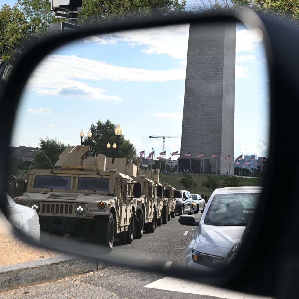 កម្លាំងកងទ័ពឆ្មាំជាតិរបស់ Trump បានចាប់ផ្តើមដាក់ពង្រាយនៅទីក្រុងវ៉ាស៊ីនតោន ជាមួយរថយន្តយោធាចំនួនប្រាំក្បែរ វិមាន Washington ដើម្បីគាំទ្រផែនការបង្ក្រាបឧក្រិដ្ឋកម្ម។ អភិបាលក្រុង Muriel Bowser និងមេប៉ូលីស Pamela Smith បានជួបជាមួយអគ្គមេធាវី Pam Bondi និងមន្ត្រីសហព័ន្ធ ដោយផ្តោតលើការប្រើប្រាស់ធនធានសហព័ន្ធឱ្យមានប្រសិទ្ធភាព។ ការដាក់ពង្រាយរួមមានសមាជិកឆ្មាំជាតិប្រហែល ៨០០ នាក់ និងភ្នាក់ងារសហព័ន្ធប្រហែល ៥០០ នាក់ ដែលមួយចំនួនបានចាប់ផ្តើមល្បាតជើងពីចុងសប្តាហ៍មុន។