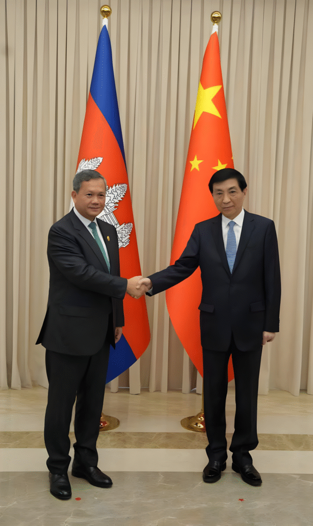 នៅព្រឹកថ្ងៃទី៣១ ខែសីហា ឆ្នាំ២០២៥ សម្តេចមហាបវរធិបតី ហ៊ុន ម៉ាណែត នាយករដ្ឋមន្ត្រីនៃព្រះរាជាណាចក្រកម្ពុជា បានអញ្ជើញចូលជួបពិភាក្សាការងារជាមួយ ឯកឧត្តម វ៉ាង ហូនឹង (Wang Huning) ប្រធានសភាប្រឹក្សានយោបាយប្រជាជនចិន ក្នុងឱកាសនៃការចូលរួមកិច្ចប្រជុំកំពូលនៃអង្គការសហប្រតិបត្តិការសៀងហៃ បូក ដែលប្រព្រឹត្តទៅពីថ្ងៃទី៣០ ខែសីហា ដល់ថ្ងៃទី០១ ខែកញ្ញា ឆ្នាំ២០២៥ នៅទីក្រុងធានជីង សាធារណរដ្ឋប្រជាមានិតចិន។