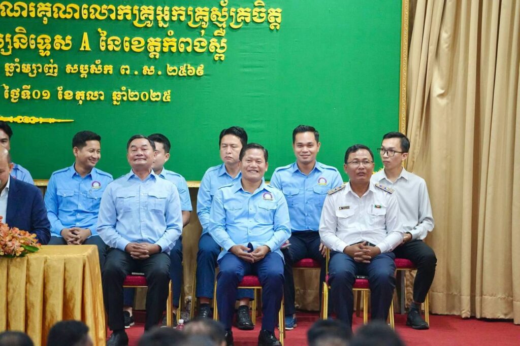នាព្រឹកថ្ងៃទី០១ ខែតុលា ឆ្នាំ២០២៥នេះ ឯកឧត្តម ហ៊ុន ម៉ានី ឧបនាយករដ្ឋមន្រ្តី រដ្ឋមន្រ្តីក្រសួងមុខងារសាធារណៈ និងជាប្រធានក្រុមការងាររាជរដ្ឋាភិបាលចុះជួយខេត្តកំពង់ស្ពឺ បានអញ្ជើញជួបសំណេះសំណាល និងប្រគល់រង្វាន់ជូនដល់ប្អូនៗសិស្សនិទ្ទេសA ចំនួន ៧៩នាក់ក្នុងខេត្តកំពង់ស្ពឺ និងលោកគ្រូអ្នកគ្រូស្ម័គ្រចិត្តដែលបានចូលរួមបង្រៀនវគ្គបំប៉នប្រឡងថ្នាក់ទី១២ ដែលបានប្រព្រឹត្តទៅនៅសាលមហោស្រព បណ្ណាល័យកំពង់ស្ពឺ។ អញ្ជើញមានវត្តមានក្នុងអង្គពិធីរួមមាន ឯកឧត្តមអ្នកតំណាងរាស្រ្ត សមាជិកក្រុមការងាររាជរដ្ឋាភិបាល អភិបាលខេត្ត ប្រធានស.ស.យ.ក. ខេត្ត និងក្រុង/ស្រុកទាំង៩ លោកនាយក លោកគ្រូ អ្នកគ្រូ និងសិស្សានុសិស្ស សរុបប្រមាណ ២៣០ នាក់។