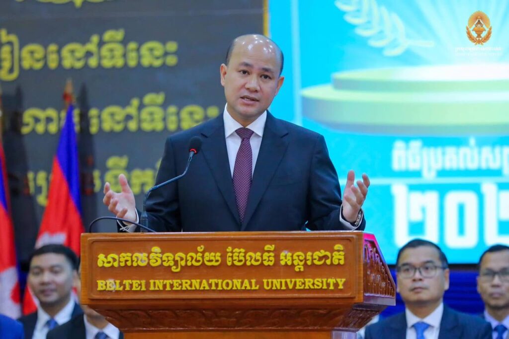 នាព្រឹកថ្ងៃទី០៣ ខែតុលា ឆ្នាំ២០២៥ នេះ ឯកឧត្តម ហ៊ុន ម៉ានី ឧបនាយករដ្ឋមន្ត្រី រដ្ឋមន្ត្រីក្រសួងមុខងារសាធារណៈ បានអញ្ជើញជាអធិបតីដ៏ខ្ពង់ខ្ពស់ ក្នុងពិធីប្រគល់សញ្ញាបត្រ ជូនដល់និស្សិតជ័យលាភីនៃសាកលវិទ្យាល័យ ប៊ែលធី អន្តរជាតិ ចំនួន ២,៨១៤អង្គ/នាក់។ ពិធីនេះ មានការអញ្ជើញចូលរួមពី ឯកឧត្តមបណ្ឌិត លី ឆេង តំណាងរាស្ត្រមណ្ឌលរាជធានីភ្នំពេញ និងជាប្រធានក្រុមប្រឹក្សាភិបាលសាកលវិទ្យាល័យ ប៊ែលធី អន្តរជាតិ ថ្នាក់ដឹកនាំក្រសួងមុខងារសាធារណៈ តំណាងក្រសួងអប់រំ យុវជន និងកីឡា និងតំណាងក្រសួង ស្ថាប័នជាដៃគូអប់រំ ព្រមទាំងគណៈគ្រប់គ្រង បុគ្គលិក សាស្ត្រាចារ្យ និស្សិតជ័យលាភីនៃសាកលវិទ្យាល័យ ប៊ែលធី អន្តរជាតិ និងមាតាបិតា អាណាព្យាបាល សរុបប្រមាណ ៤,០០០អង្គ/នាក់។