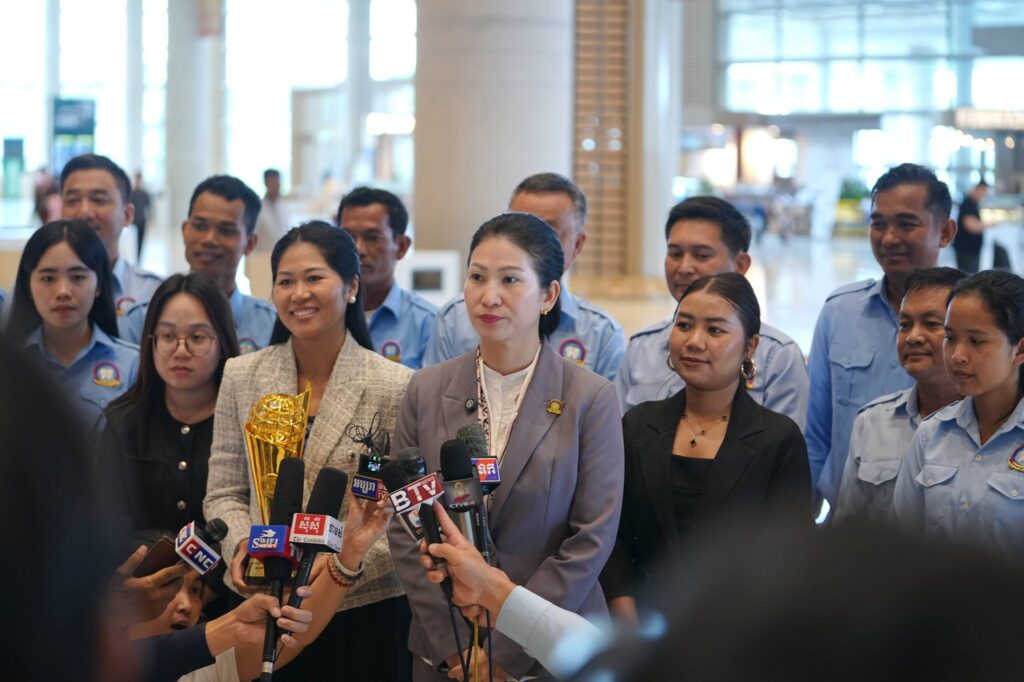 នាព្រឹកថ្ងៃទី២៧ ខែតុលា ឆ្នាំ២០២៥នេះ លោកជំទាវ ដាំ ដារីនី អនុប្រធាន ស.ស.យ.ក. ព្រមទាំងគណៈប្រតិភូកម្ពុជា បានអញ្ជើញធ្វើមាតុភូមិនិវត្តដោយនាំយកនូវពានរង្វាន់អាស៊ាន មកដល់អាកាសយានដ្ឋានអន្តរជាតិតេជោប្រកបដោយជោគជ័យ និងសុវត្ថិភាព ព្រមទាំងមានការស្វាគមន៍យ៉ាងកក់ក្ដៅពីសំណាក់សមាជិក សមាជិកា ស.ស.យ.ក. ជាច្រើនរូប។