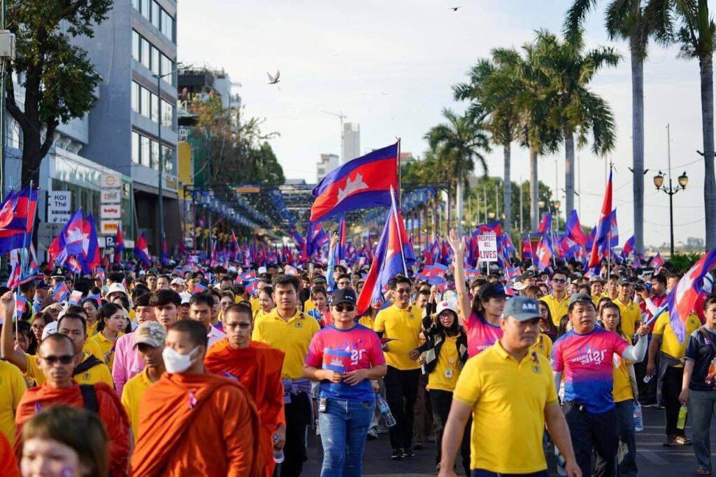 ព្យុហយាត្រា «ដើរដើម្បីសន្តិភាព» របស់មហាគ្រួសារខ្មែរ បានចាប់ផ្ដើមចេញដំណើរពីបរិវេណផ្សាររាត្រីមាត់ទន្លេ ឆ្ពោះទៅកាន់សួនច្បារវិមានឯករាជ្យ ក្នុងបរិយាកាសពោរពេញដោយក្ដីសង្ឃឹម ក្ដីជឿជាក់ និងស្មារតីសាមគ្គីភាពជាតិ។