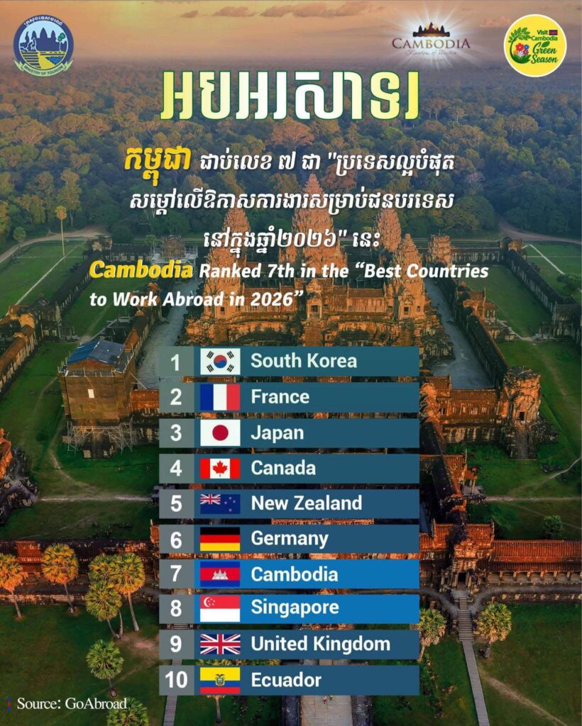 អបអរសាទរ កម្ពុជាជាប់លេខ ៧ ជា “ប្រទេសល្អបំផុត សម្តៅលើឱកាសការងារ សម្រាប់ជនបរទេស នៅក្នុងឆ្នាំ២០២៦” នេះ!🇰🇭