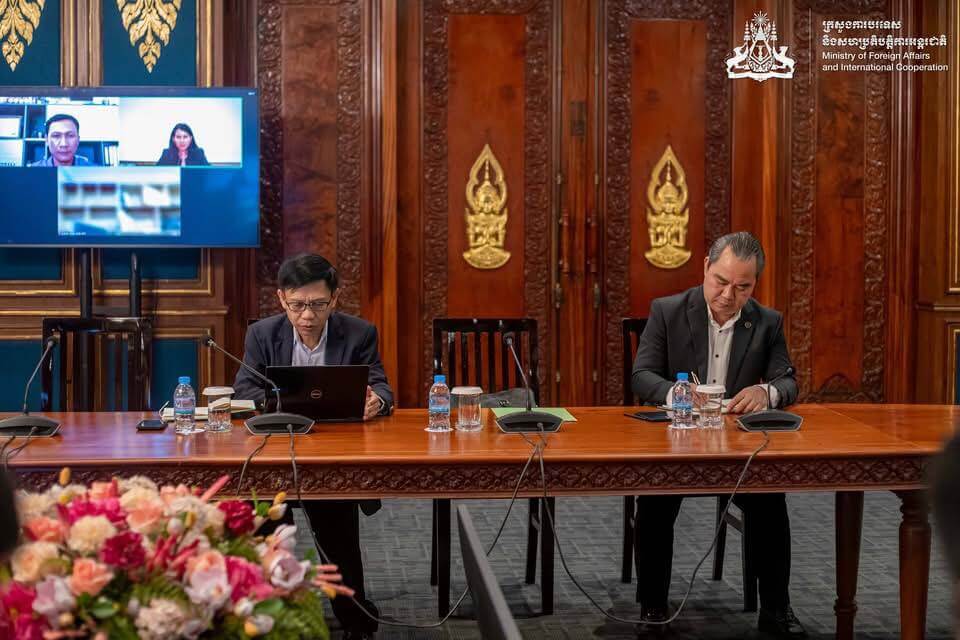នៅរសៀលថ្ងៃទី២៤ ខែកុម្ភៈ ឆ្នាំ២០២៦ នៅទីស្តីការក្រសួង លោកជំទាវ ជ្រឹង បុទុមរង្សី រដ្ឋលេខាធិការ នៃក្រសួងការបរទេស និងសហប្រតិបត្តិការអន្តរជាតិ (កបទ.សអ) បានដឹកនាំកិច្ចប្រជុំបែបចម្រុះ (ផ្ទាល់ និងតាមប្រព័ន្ធអនឡាញ) ស្តីពីការពង្រឹងកិច្ចសហប្រតិបត្តិការក្នុងវិស័យកសិកម្ម និងពាណិជ្ជកម្មរវាងកម្ពុជា និងចិន ក្នុងន័យជំរុញការងារការទូតសេដ្ឋកិច្ច។ កិច្ចប្រជុំនេះមានការចូលរួមពីសមាជិកក្រុមការងារសម្របសម្រួលការទូតសេដ្ឋកិច្ច នៃកបទ.សអ តំណាងក្រសួងកសិកម្ម រុក្ខាប្រមាញ់ និងនេសាទ អនុព័ន្ធពាណិជ្ជកម្មអមស្ថានអគ្គកុងស៊ុលកម្ពុជាប្រចាំទីក្រុងសៀងហៃ និងតំណាងសមាគមសហគ្រិនវ័យក្មេងកម្ពុជា (YEAC)។