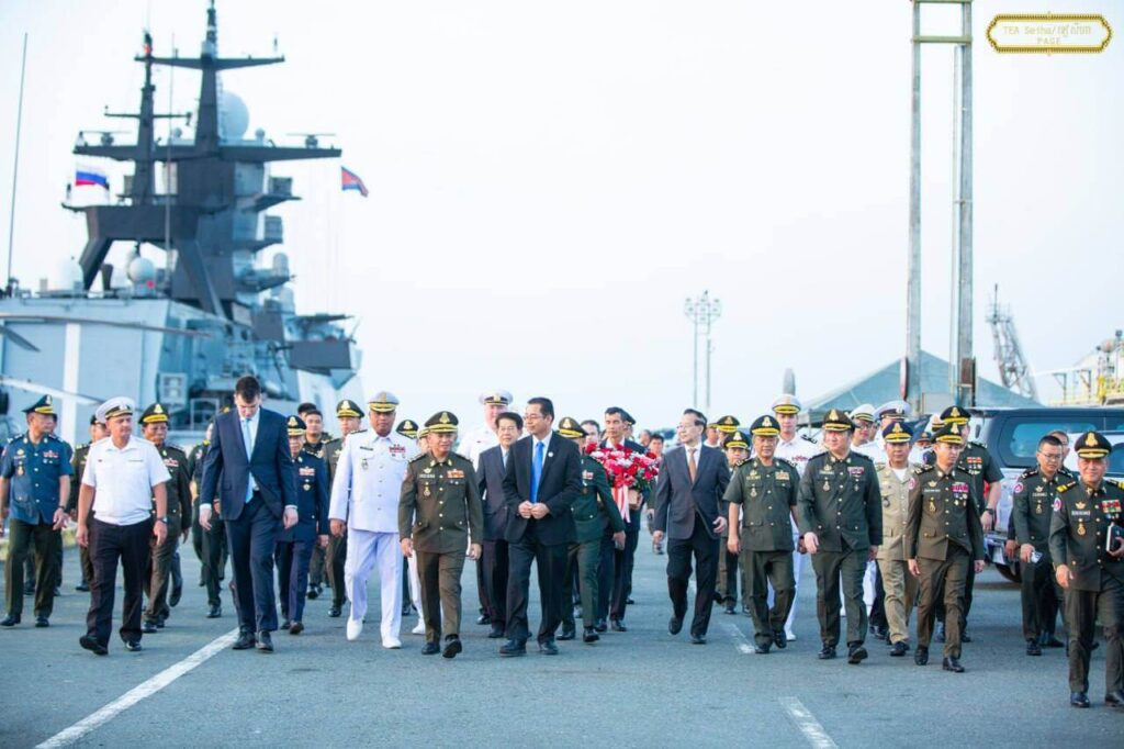 ថ្ងៃទី៧ ខែមេសា ឆ្នាំ២០២៦ ឯកឧត្តម នាយឧត្តមសេនីយ៍ ទៀ សីហា ឧបនាយករដ្ឋមន្ត្រី រដ្ឋមន្ត្រីក្រសួងការពារជាតិ បានទទួលសូមស្វាគមន៍នាវាចម្បាំងរបស់រុស្ស៊ីចំនួន២គ្រឿង (នាវា Sovershenny លេខ៣៣៣ និងនាវា Rezky លេខ៣៤៣) មកពីកងនាវាប្រចាំតំបន់ប៉ាស៊ីហ្វិកនៃកងទ័ពជើងទឹកសហព័ន្ធរុស្ស៊ី ដែលបានចូលចតនៅកំពង់ផែស្វយ័តក្រុងព្រះសីហនុ ដើម្បីបំពេញទស្សនកិច្ចរយៈពេល៣ថ្ងៃនៅកម្ពុជា ជាមួយនាវិកសរុបប្រមាណ ២៦២នាក់។