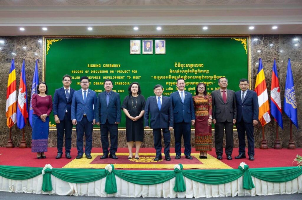 ឯកឧត្ដម ហេង សួរ រដ្ឋមន្ត្រីក្រសួងការងារ និងបណ្ដុះបណ្ដាលវិជ្ជាជីវៈ និងលោកស្រី ឆយ ម៉ូន ជុង (CHOI Moon Jung) នាយិកាទីភ្នាក់ងារសហប្រតិបត្តិការអន្តរជាតិកូរ៉េ (KOICA) ប្រចាំកម្ពុជាបានចុះហត្ថលេខាលើកំណត់ហេតុនៃកិច្ចពិភាក្សាស្តីពី “គម្រោងអភិវឌ្ឍកម្លាំងពលកម្មជំនាញ ដើម្បីឆ្លើយតបតម្រូវការឧស្សាហកម្មនៅកម្ពុជា” នារសៀលថ្ងៃទី២០ ខែមេសា ឆ្នាំ២០២៦ នៅទីស្តីការក្រសួង។