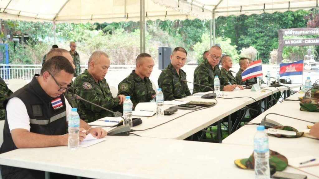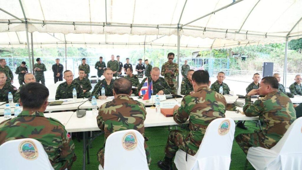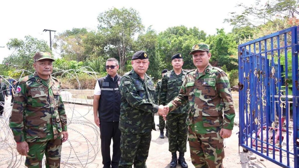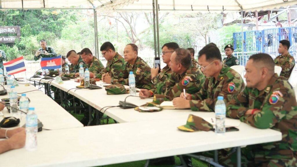 ក្រសួងការពារជាតិ នៃព្រះរាជាណាចក្រកម្ពុជាបានឲ្យដឹង នៅព្រឹកថ្ងៃទី២៣ ខែមេសា ឆ្នាំ២០២៦នេះថា យោធភូមិភាគទី៤ ភាគីកម្ពុជា និងកងទ័ពភូមិភាគទី២ ភាគីថៃ បានជួបប្រជុំក្រៅផ្លូវការរបស់ក្រុមលេខាធិការដ្ឋាននៃគណៈកម្មាធិការព្រំដែនថ្នាក់យោធភូមិភាគកម្ពុជា-ថៃ (RBC) នៅវេលាម៉ោង ១១:០០នាទី នៅច្រកអន្តរជាតិជាំ-សាង៊ាំ ស្រុកអន្លង់វែង ខេត្តឧត្តរមានជ័យ។ ក្នុងនោះ គណៈប្រតិភូកម្ពុជាដឹកនាំដោយ ឧត្តមសេនីយ៍ត្រី និត ណារ៉ុង ប្រធានក្រុមលេខាធិការ (RBC) កម្ពុជា និងគណៈប្រតិភូថៃដឹកនាំដោយ ឧត្តមសេនីយ៍ត្រី កាំផាក់ណាក វាផាន់ស៊ុ ប្រធានក្រុមលេខាធិការ (RBC ) ថៃ។
